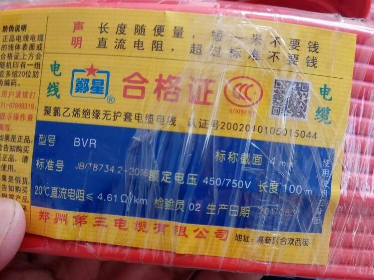 三厂阻燃电线(ZC-BV/ZC-BVR)
