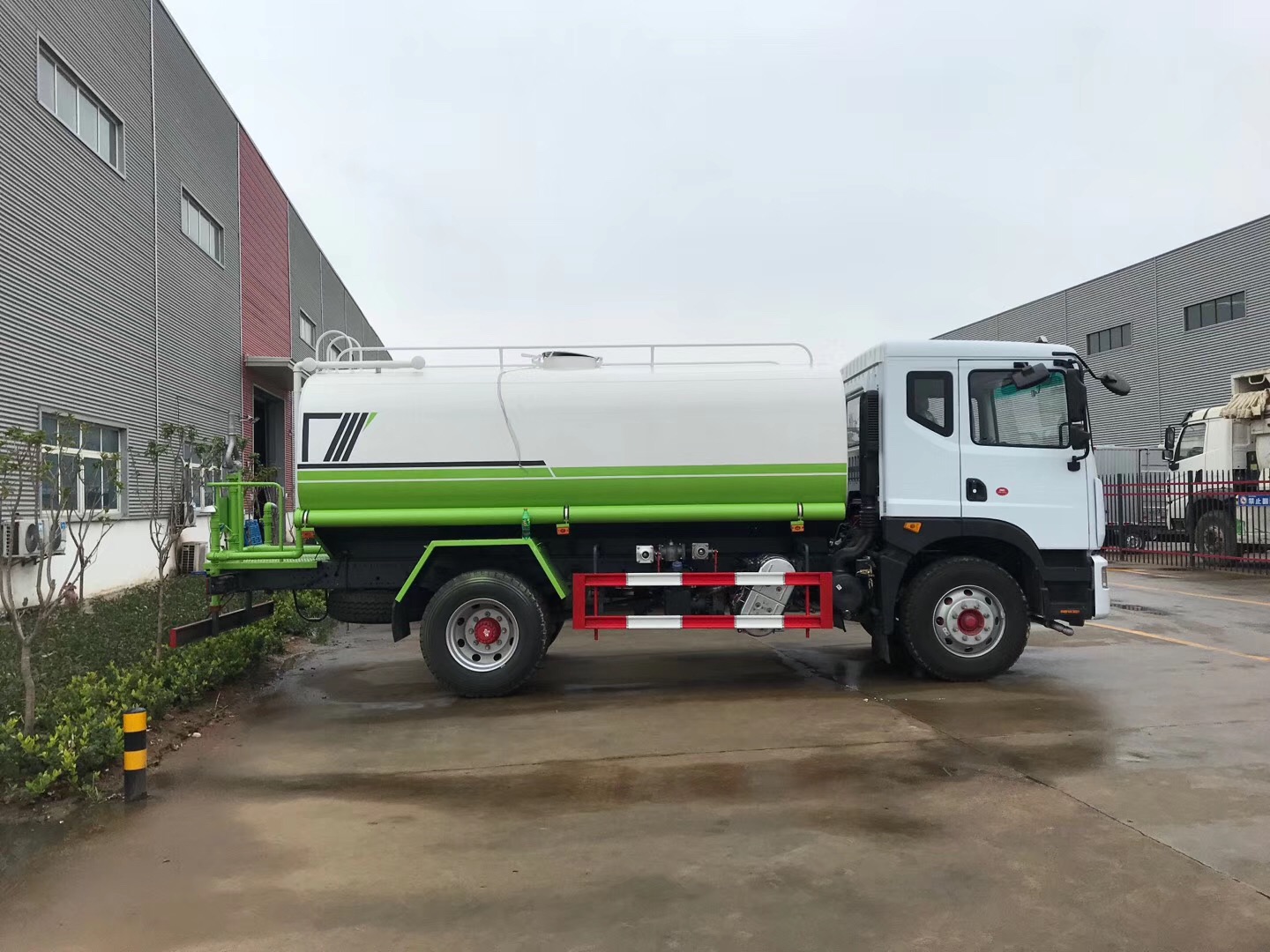 专用配置:罐体容积 13立方,罐体采用国标Q235碳钢材质,罐体厚度4MM,前后封头5MM加厚型,罐体内双层隔板具有防波荡作用,以减轻汽车行驶时罐内液体冲击;洒水车整车及外形尺寸严格按照国家机动车公告制作而成;装配大功率专用洒水泵,前冲、后洒、侧喷、后平台带绿化洒水炮,洒水炮可全方位旋转,可连续调成直冲状、大雨、小雨、毛毛雨;配消防接口,自流阀,滤网,带自吸自排功能。前封头带水位计,后平台主管路带1寸浇花接口,后爬梯,带1个消防接头,带1个自流阀,1个过滤装置,其余标配。1、可选装后平台带雾炮机组用于喷雾降尘、农药喷洒作业;2、可选装前置电子洒水炮驾驶室操作;3、可选装气动球阀驾驶室操作。