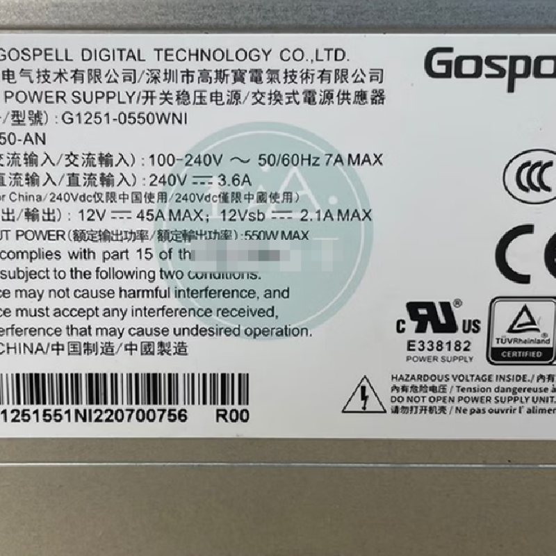 Gospower G1251-0550WNI CRPS0550-AN 高斯宝开关稳压电源 交换式电源供应器 工控机、服务器冗余电源模块批发TEL:13910098771