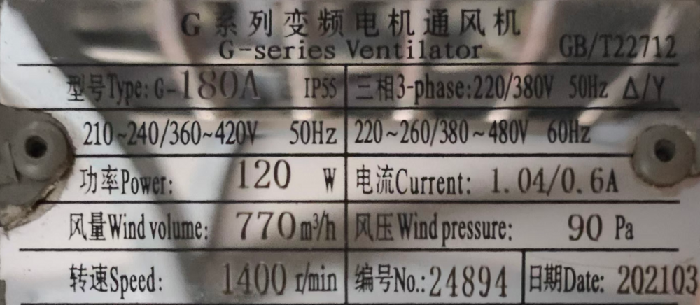 G-series Ventilator G-180A 120W 1400r/min 380V G系列变频电机通风机、西门子贝得变频电机通风机批发TEL:13910098771