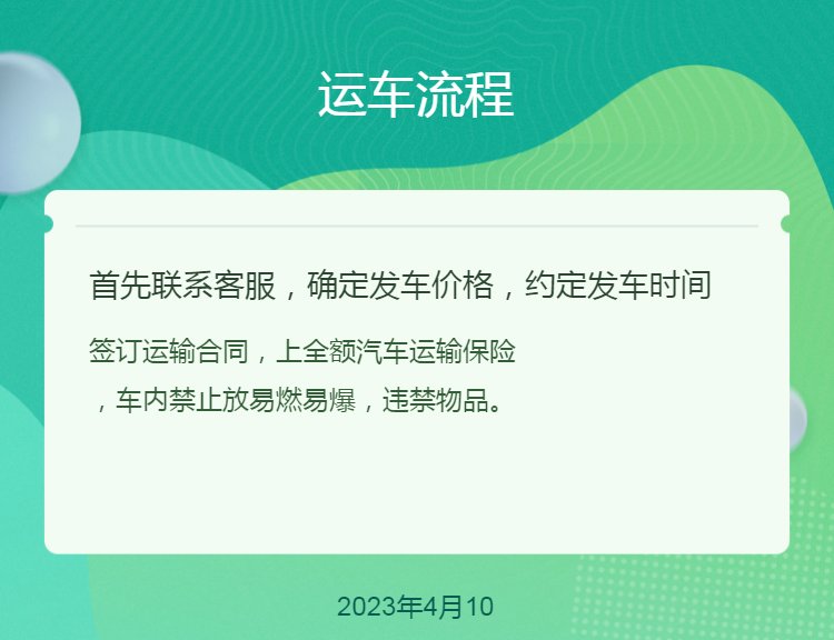 服务类型 | 汽车托运 轿车托运 私家车托运 | ||