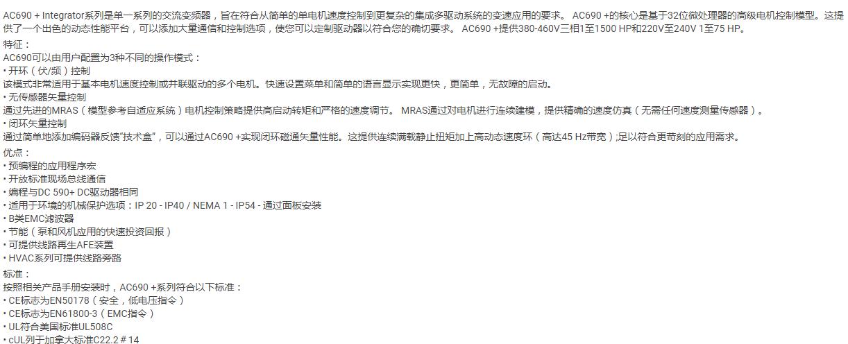 派克ParkerAC690高性能变频器 690PH/2000/400/0011B0 产品系列 | Parker AC690 系列 | ||