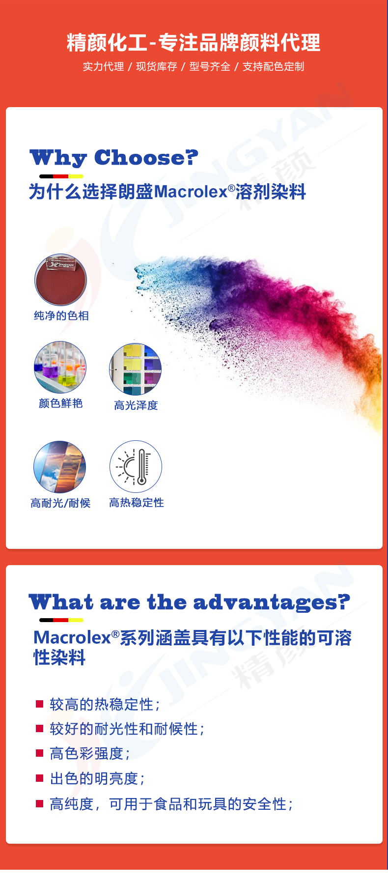 产品特性 | 耐高温、高透明、高耐光、高着色力 | ||