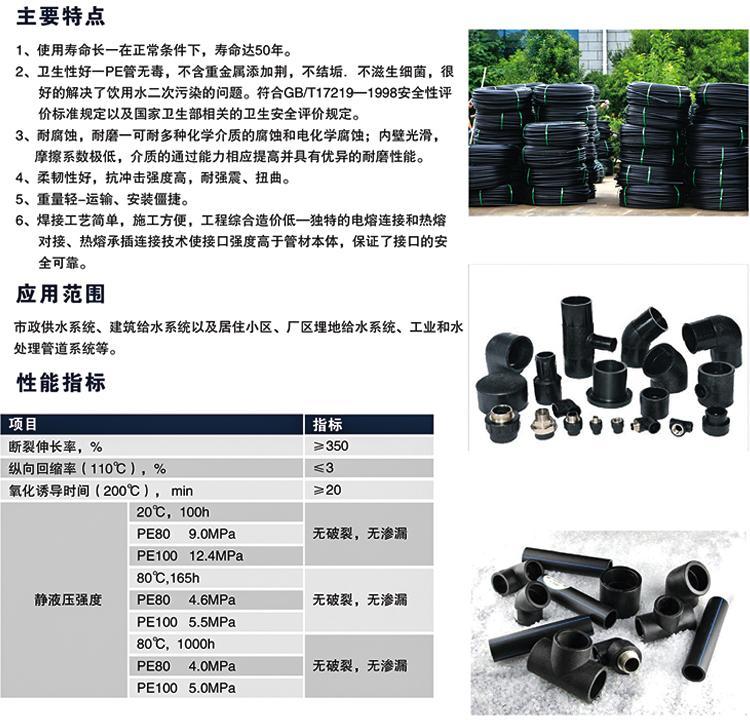 浙江温州HDPE给水管pe管生产厂家国标pe管PE排水管PE穿线管厂家直销100级给水管全新料包检测