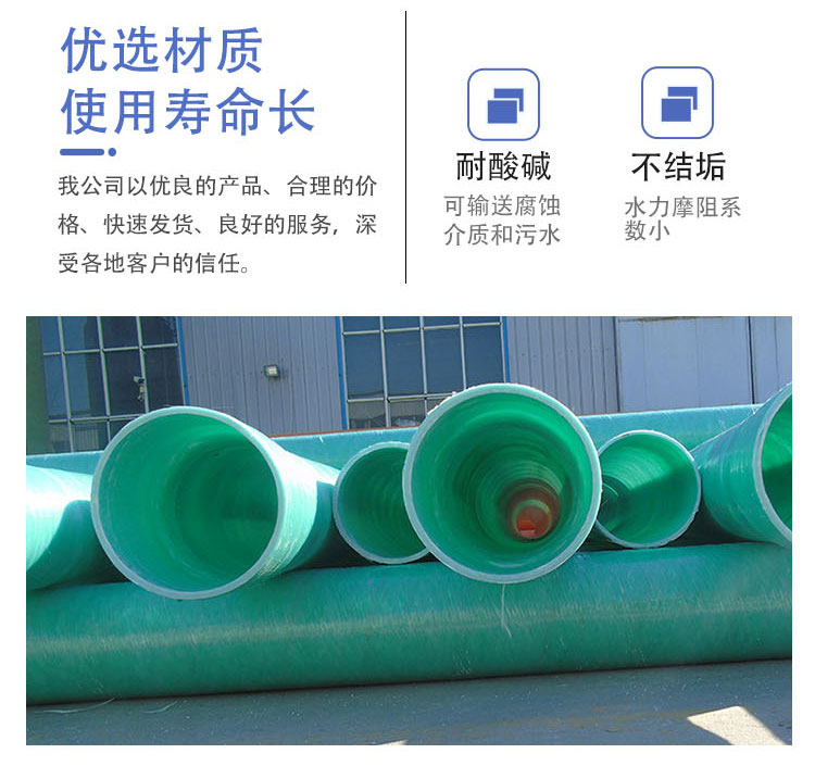 缠绕玻璃钢管道是一种轻质、防腐的非金属管道。它是由树脂为基体,玻璃纤维为增强材料经特殊工艺制作而成。这种管道有防腐性能、水力特性优异、应用领域广等优点,轻质寿命长、可设计性强、流体阻力小、安装快捷、综合造价低等优点。可用于化工、电力、造纸、城市给排水、工厂污水处理,海水淡化、矿山等行业,是理想的输送液体、气体的管道。近年来,我国玻璃钢管道生产发展很快,数量逐年上长,应用范围及部门也越来越广。目前主要有以下几类:玻璃钢工艺管道、玻璃钢夹砂管道等。