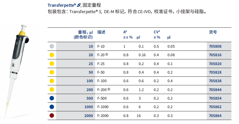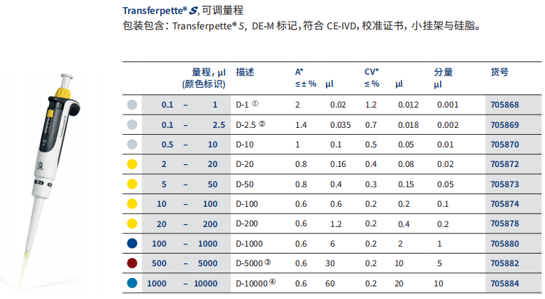 BRAND移液器,可调量程/Transferpette® S 微量移液器,固定量程, conformity 资格认证,含有性能认证证书, 壁挂架与密封硅油
