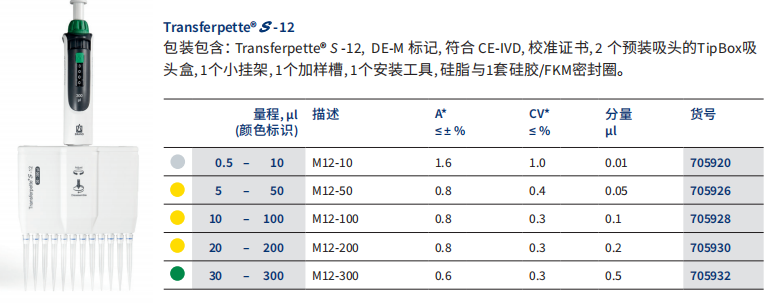 - 多通道移液器的剂量范围:从 0.5 μl 至 300 μl