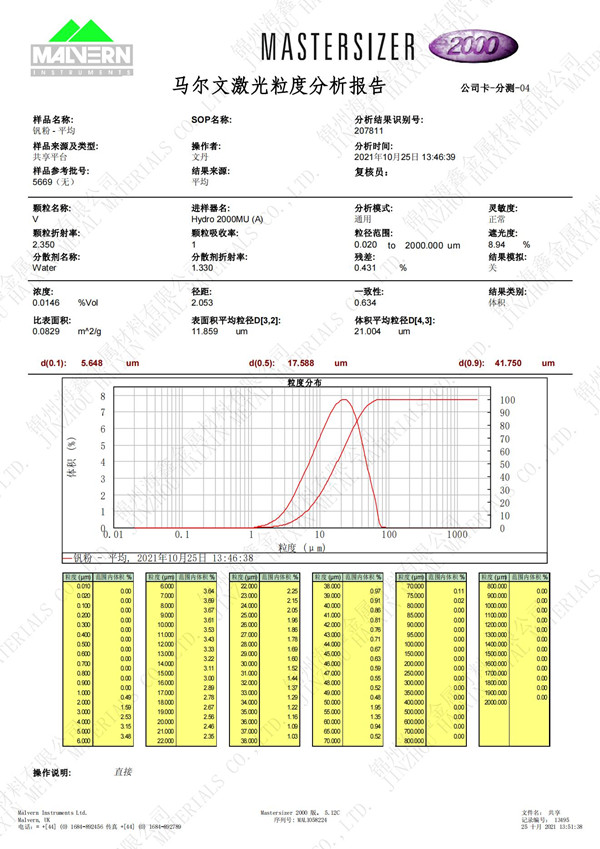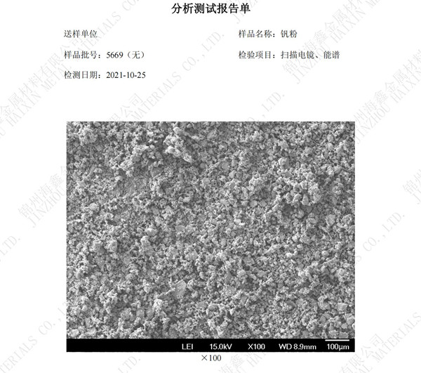 牌号 | V | 品名 | 钒粉 |