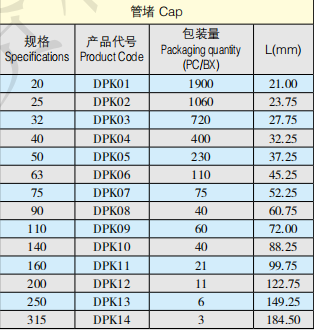 UPVC给水管堵管帽 重庆璧山现货供应 上水管管堵 给水管帽
