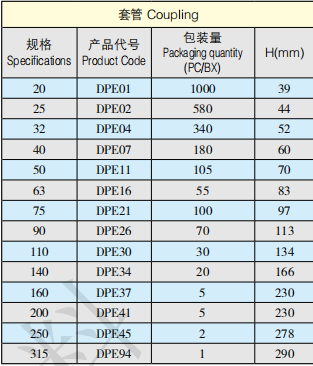 公称外径 | 20-315 | 壁厚 | 20-315 |