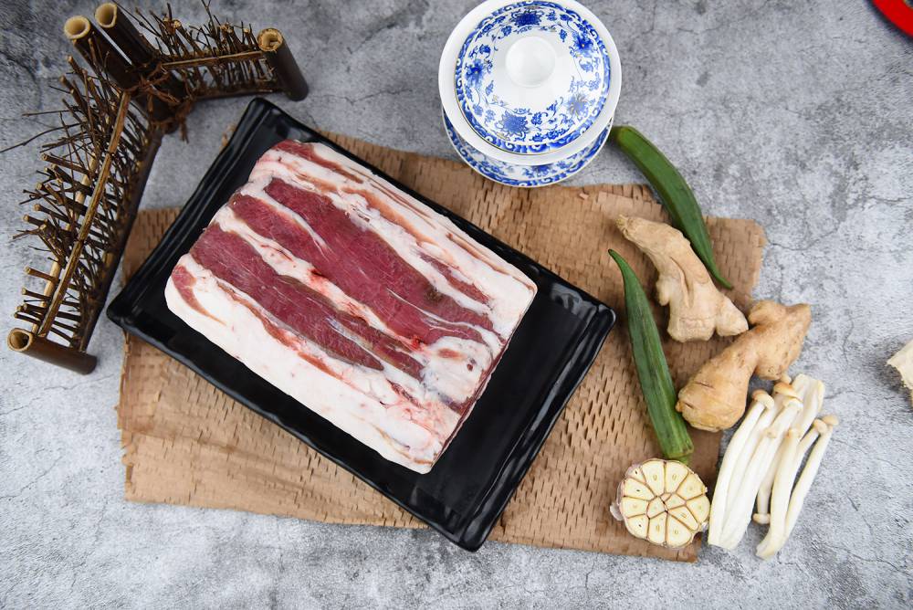 原切羊背保留羊外脊(纽约克)和羊里脊(羊菲力)一个部位两个面的肉全部保留,脊骨的内侧为里脊,外侧则是外脊。外脊的肉呈长条形,长如扁担,也俗称扁担肉。外面有一层皮带筋,纤维呈斜形,肌肉细腻、肉质鲜嫩多汁、是分割羊肉的高级部位,由于出肉率太少尤为珍贵。适合整条烧烤或成块烧烤。里脊肉是紧靠脊骨后侧的小长条肉,因形似竹笋,纤维细长,又称为“竹笋羊肉”,肌肉纤维丰富细长、鲜嫩多汁肉质细嫩,是全羊身上较为细嫩的两条瘦肉,羊里脊肉蛋白质含量高,而脂肪含量低,所以味道鲜美。适于溜、炒、煎、炸等。还保留部分羊脊骨,一款产品三种风味。