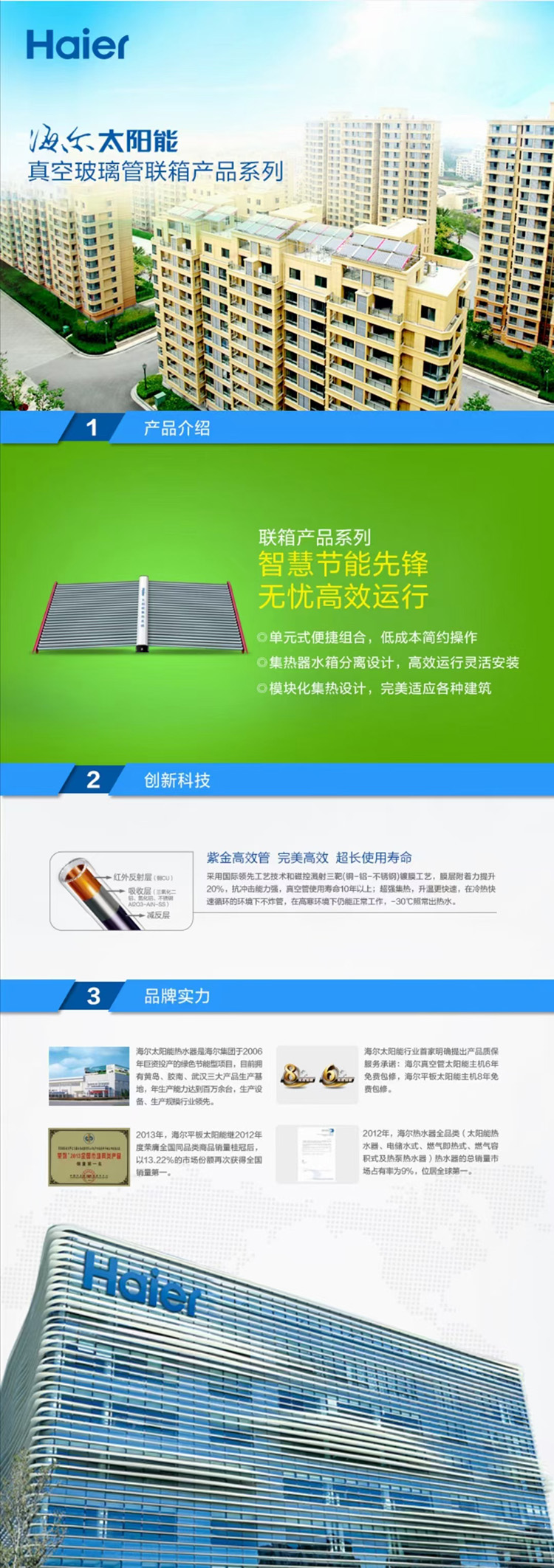 品牌海尔太阳能产品名称联箱太阳热水器