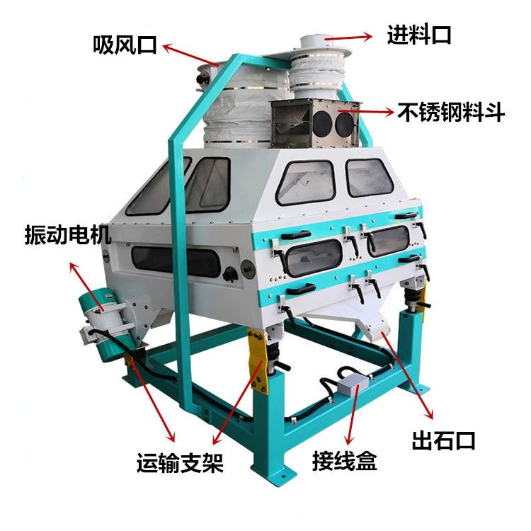 粮食去石机主要应用于去除五谷杂粮小石头,粮食进行集中筛选清理杂质后,主要进行去石,减少粮食中的石头和泥沙含量。粮食去石机采用的是比重筛选法。