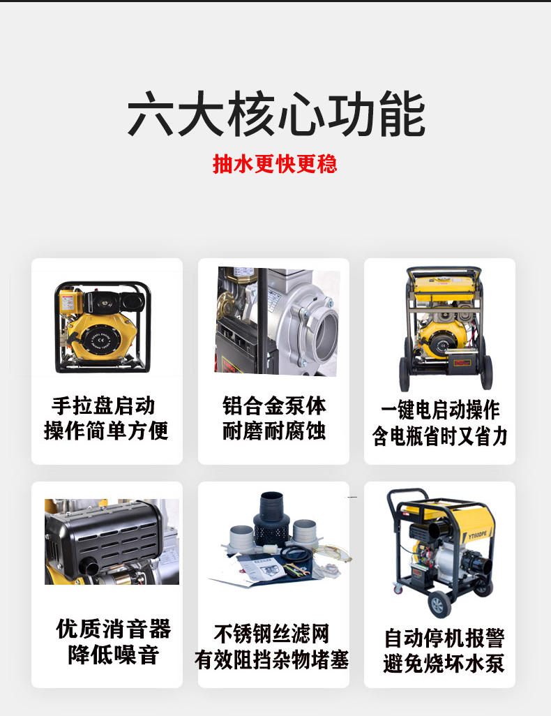 伊藤动力4寸柴油机排水泵带轮子移动抽水泵推车式电启动YT40DPE-2