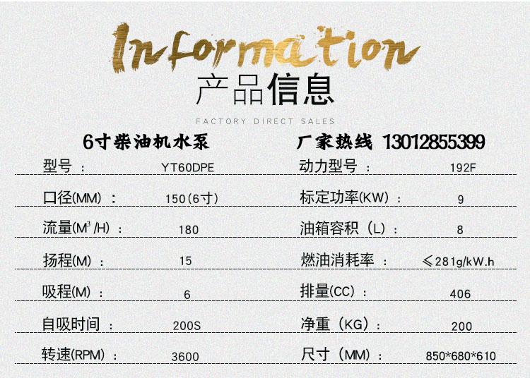 伊藤动力6寸柴油机水泵150mm口径移动式防汛应急消防泵YT60DPE