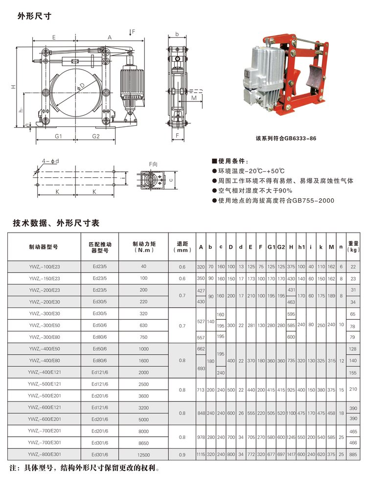 国标产品 电力液压鼓式制动器 YWZ4-400/50 矿山机械 焦作江河 安装方式 | 垂直 | ||