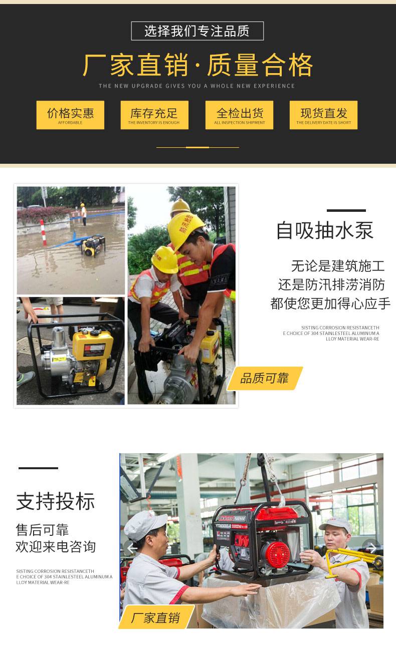 6 8寸柴油机抽水泵 移动式防汛应急排涝泵 伊藤动力YT80DPE/YT60DPE 泵轴位置边立式