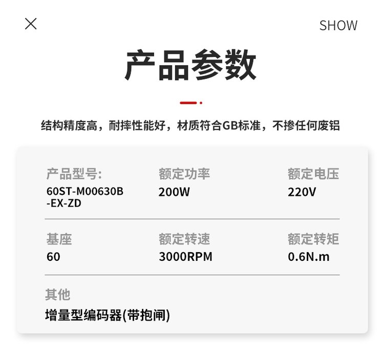 配件名称 | NSK轴承,多摩川编码器,F级绝缘漆 | ||