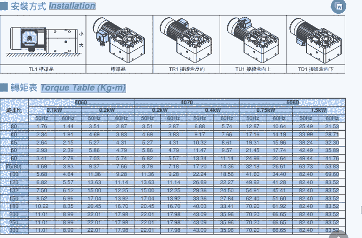 厦门东历电机TL4060-0200-90S3安装方式及扭矩图;
