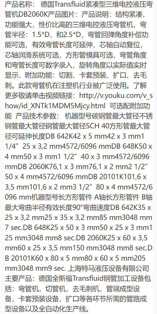 订货号 | TRANSFLUID 不锈钢弯管机 | ||