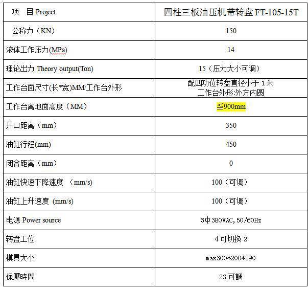 产品特性 | 转盘油压机 | ||