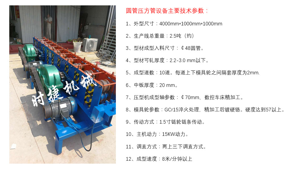 建筑圆管压方管设备,主要应用于建筑工地,该机器可以把费用圆管材料重新再次利用,变为方管使用,也是一些费用材料重新利用,为公司带来更好的利润,节省成本,这就是为什么现在建筑行业都喜欢用圆管变方管机的原因了。圆管变方管机设备、圆管变方管成型机山东建筑,银川建筑用 架子圆钢管成型方管设备,建筑管径48mm架子圆钢管压成方管成型机设备主要讲圆管辊压成型40x40方管3x5方管,压厚可达3.5mm,速度12m/min,40x40方管将代替木桩、木条用于建筑上,提高了搬卸的灵活性,也节省了大量的成本,废旧钢管可回收利用,木桩和木条用坏了直接当做垃圾处理(不可回收),无论从利用率还是从成本方面出发,用钢管优于木桩和木条。