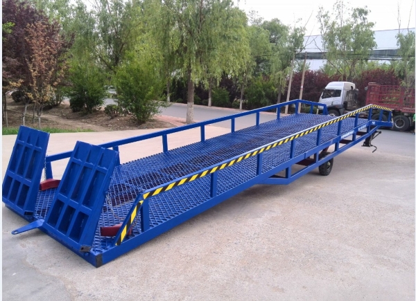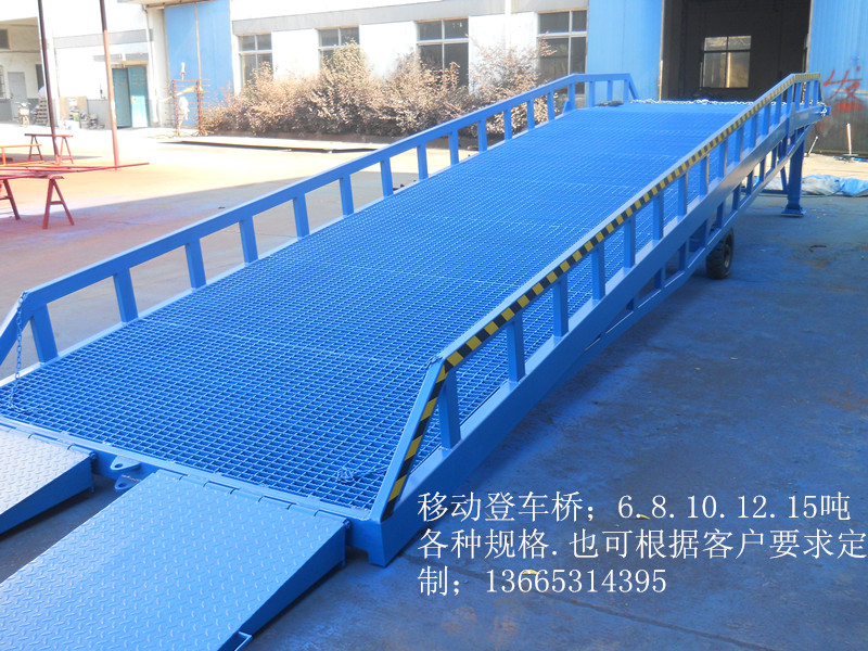 移动式登车桥产品简介:移动登车桥在现代物流现场已是一非常易见的结构形式。它是企业物流链的起点与终点,是企业快速、安全周转产品及货物的一个装卸货操作平台