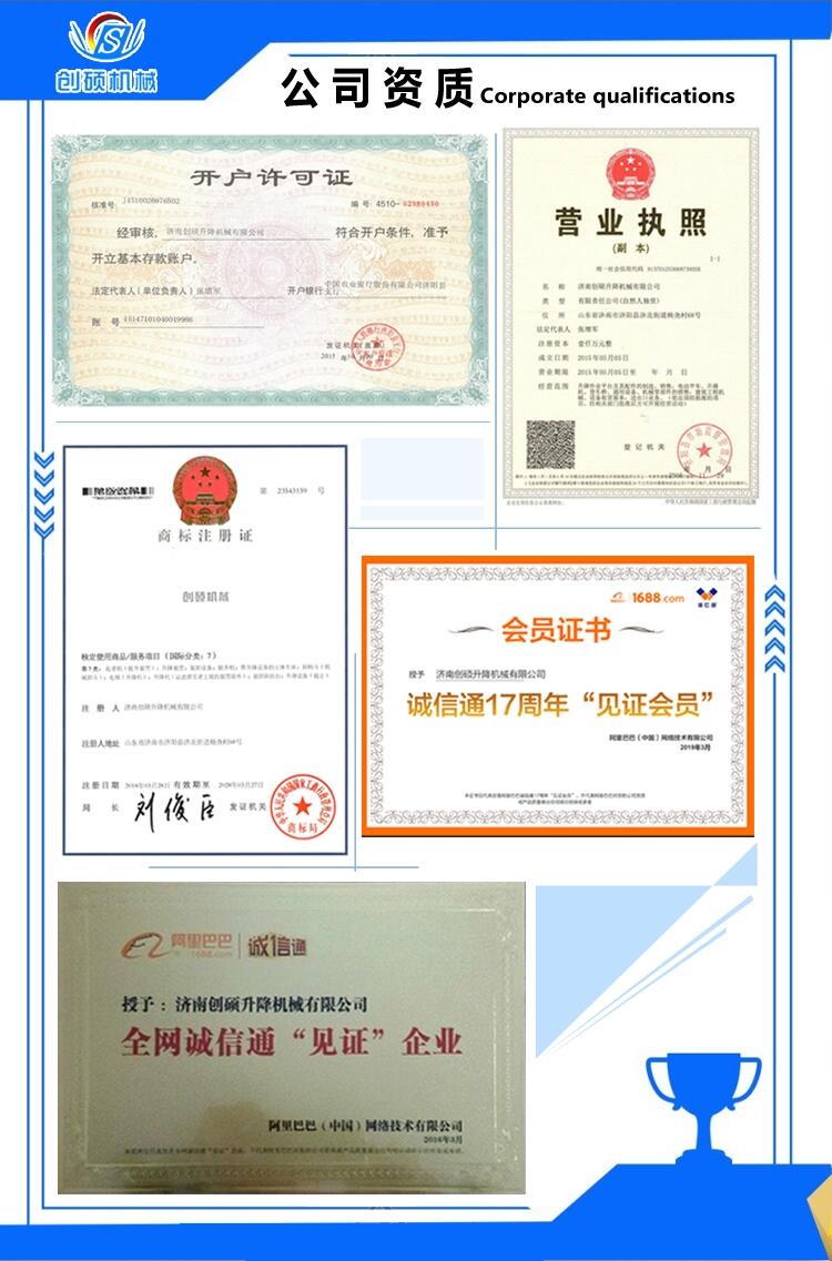 济南创硕机械有限公司的产品共有十大系列八十多个品种,主导产品是SJY系列剪叉液压升降平台、SJY液压升降货梯、液压升降车、铝合金升降平台液压固定式登车桥、交、直流电动平车等产品。我公司生产的升降平台及登车桥产品全部采用意大利进口的具有国际先进水平的液压系统,所有密封件使用的德国(德氏封)品牌。公司所有产品全部符合国家行业标准。