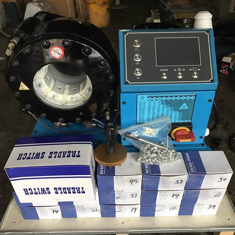 液压管扣压机价格 胶管扣压机又叫液压压管机,扣管机,啤油喉。该液压压管机是在压力作用下使金属接头产生变形,从而平稳、***地扣压在胶管上的专用设备、如(液压机械、注塑机、挖机、装载机、吊机、汽车空调管),是液压机械厂,挖机维修点的必选设备。本扣管机模块采用双斜面设计,扣压力加大,压管无锥度,使用寿命长,低噪音,具有体积小,重量轻,功能多,开模快,易操作,好维修等优点。本机自1999年开始投入市场,2年内故障率不到1%,是一款性能稳定,简单易用,经济型的大口径液压压管机.