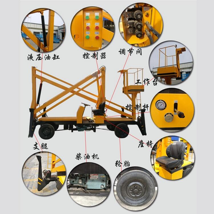 拖车曲臂式升降机:可以挂在汽车上,与汽车同步,适合野外高空作业。