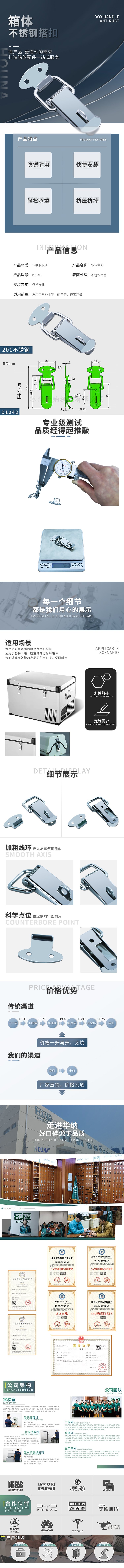 华纳五金不锈钢鸭嘴锁扣五金属工业箱扣定制扁嘴搭扣厂家D104D