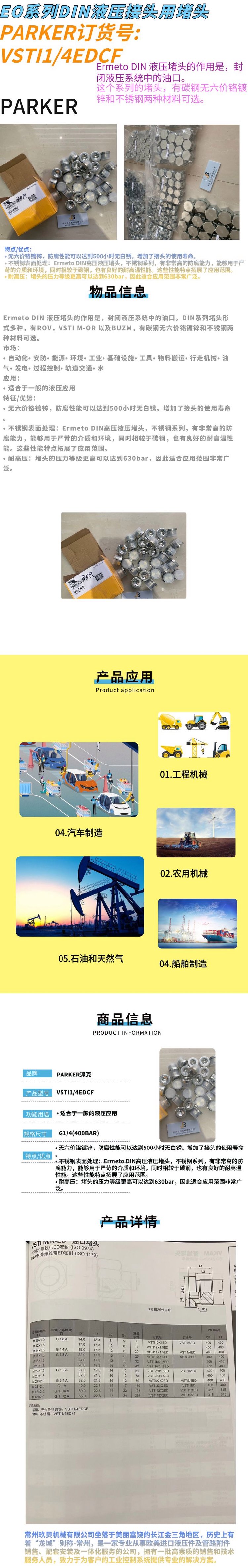 PARKER内六角堵头VSTI1\/4EDCF封闭液压系统中的油口无六价铬镀锌