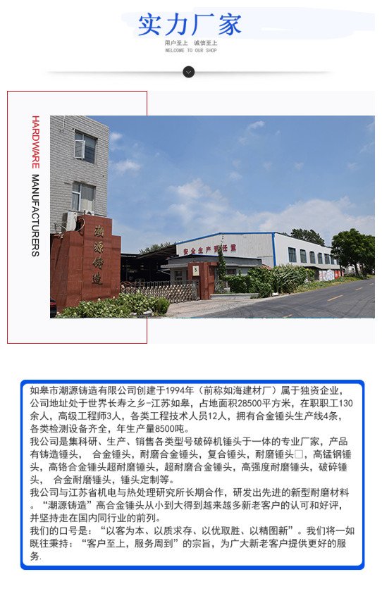 潮源耐磨复合破碎机锤头高猛钢细碎机榔头可定制