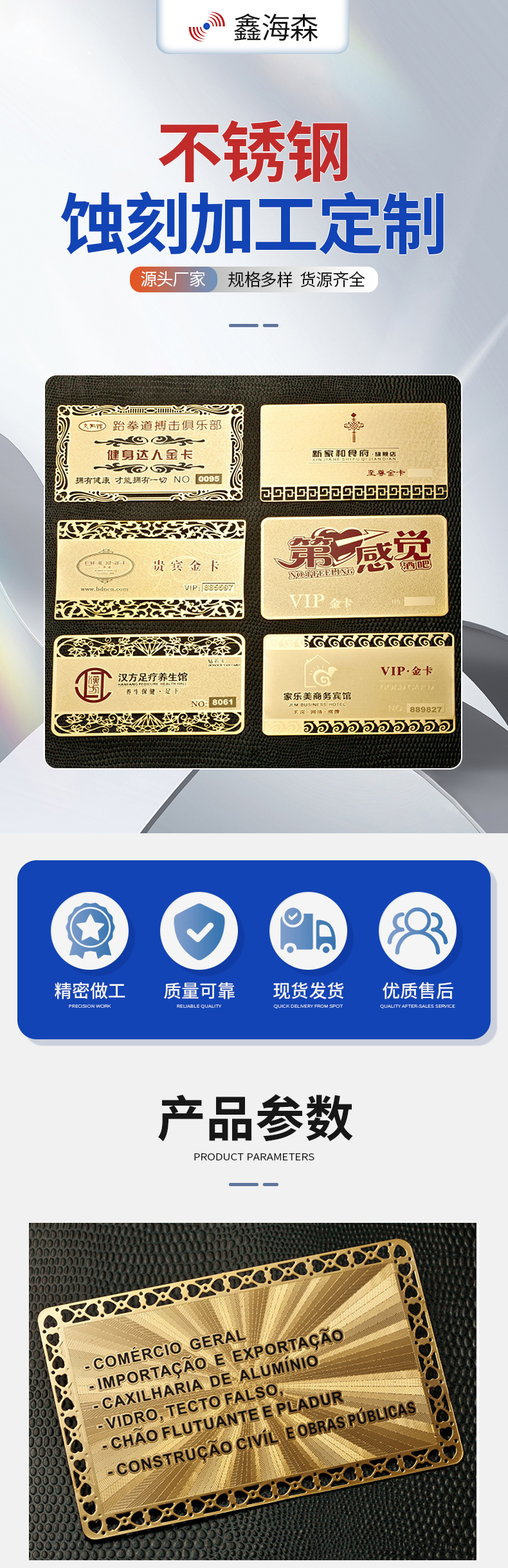 VIP会员卡金属蚀刻定制金属镂空拉丝卡片定做不锈钢蚀刻片