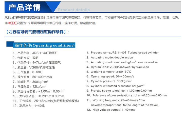JRB力行程可调气液增压缸2年免费保修非标定制严谨工艺