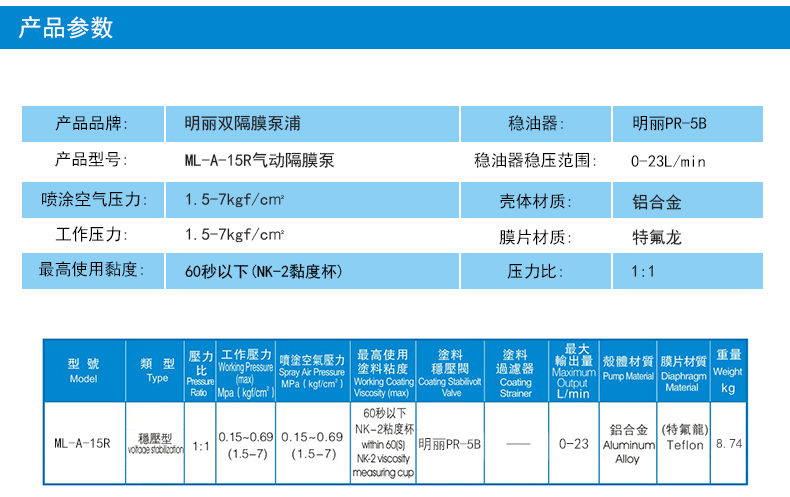 明丽ML-A-15R稳压型气动双隔膜泵喷漆喷涂泵油泵泵浦