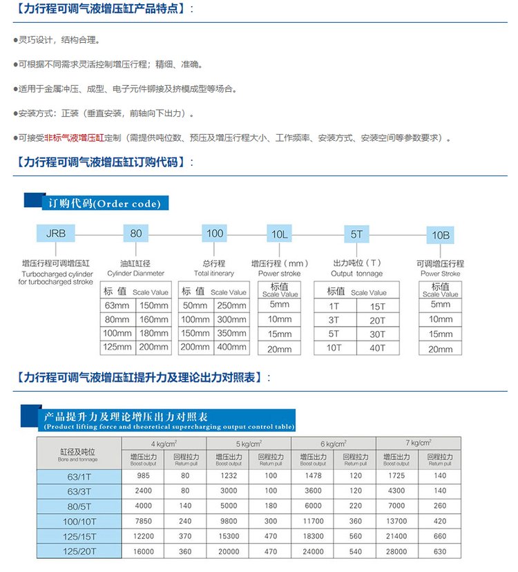 JRB力行程可调气液增压缸2年免费保修非标定制严谨工艺