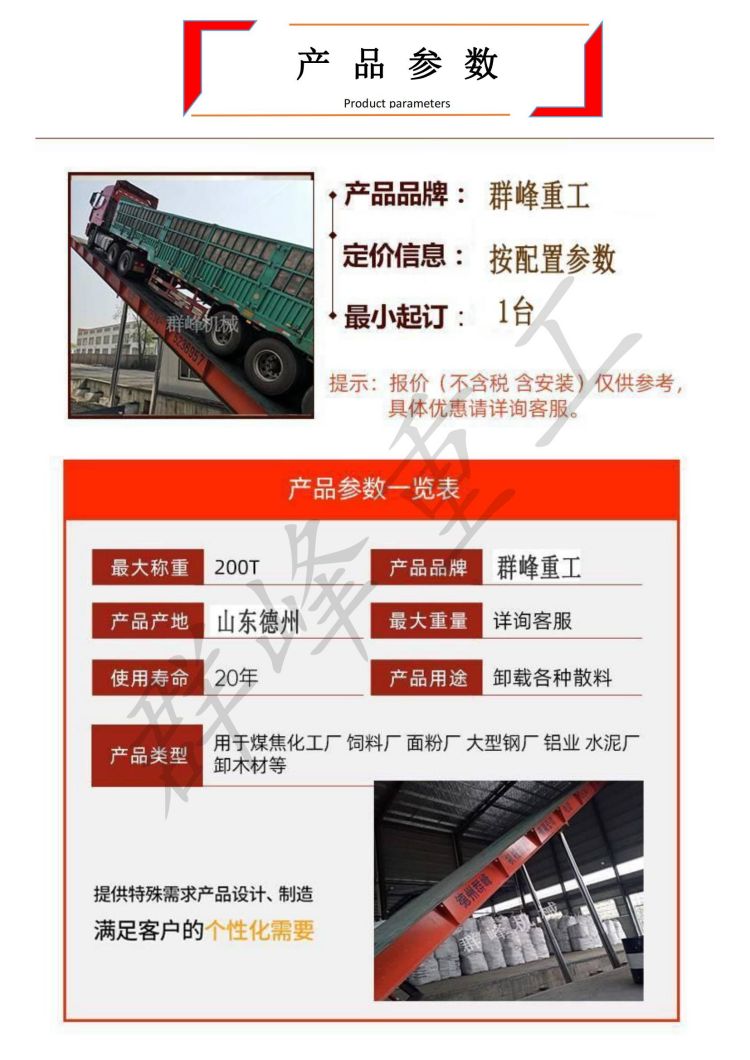 倒入式液压卸车机粮食建材化工行业原料卸车3x17m100t支持定制