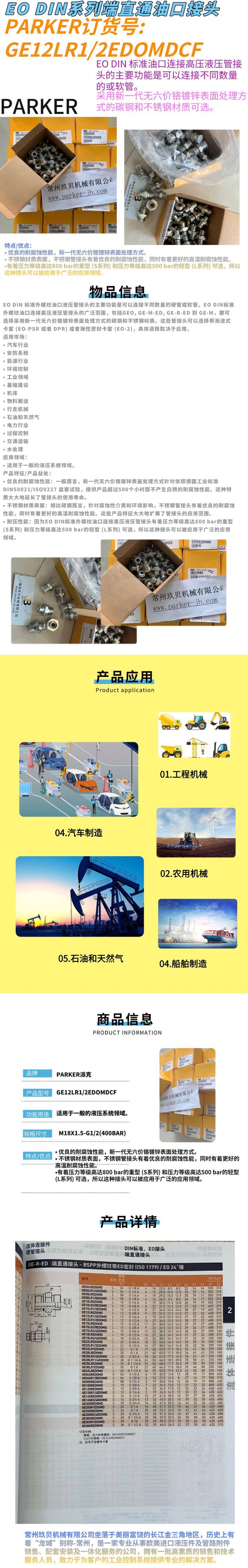 PARKER派克端直通接头BSPP外螺纹带ED密封新一代无六价铬镀锌表面