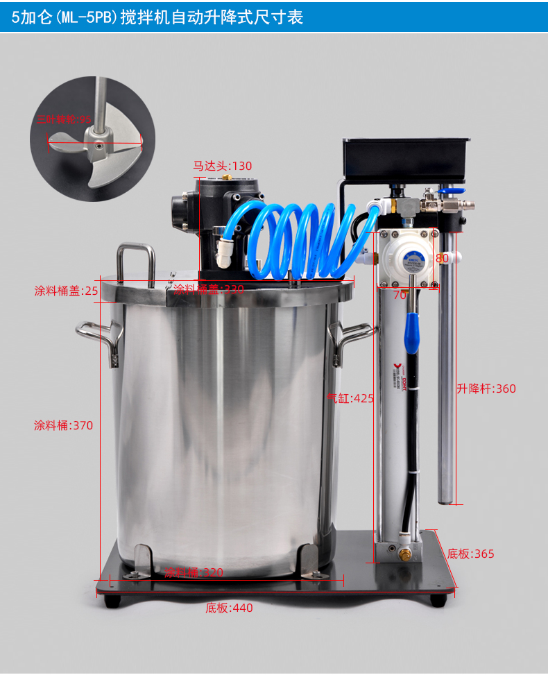 • 规格:5加仑(ML-5PB)自动升降搅拌机涂料桶一体机