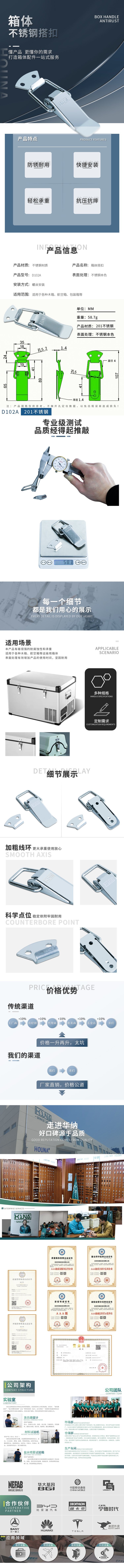 华纳五金带鼻锁搭扣弹簧锁扣不锈钢搭扣锁电源箱挂扣D102A
