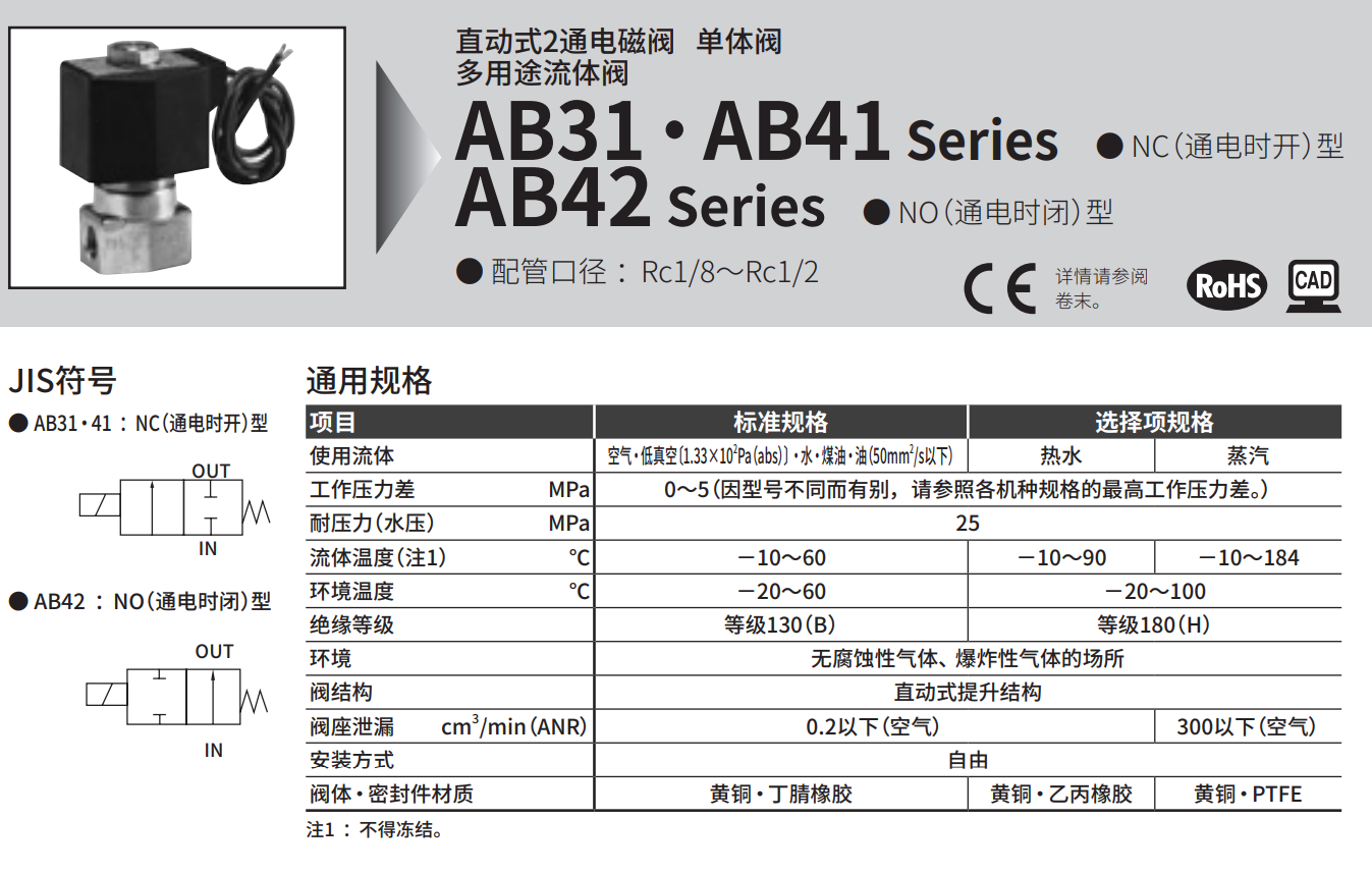 日本CKD电磁阀AB41-03-5-03A-DC24V直动式2通单体阀多用途流体阀