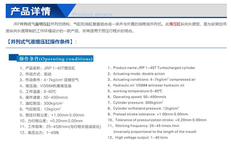 JRP并列式气液增压缸2年免费保修非标定制众多客户的选择