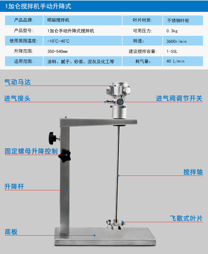 产品型号 | 1加仑升降式手动搅拌机 | ||