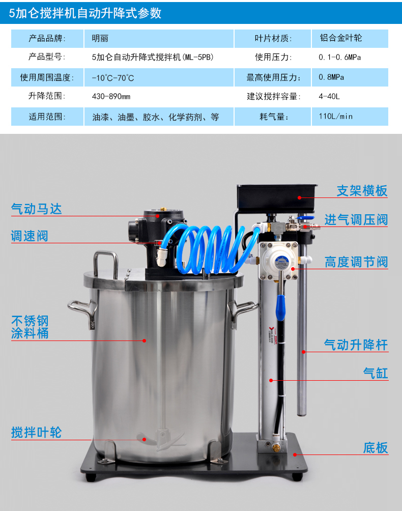 产品型号 | 5加仑自动升降式搅拌机(ML-5PB) | ||