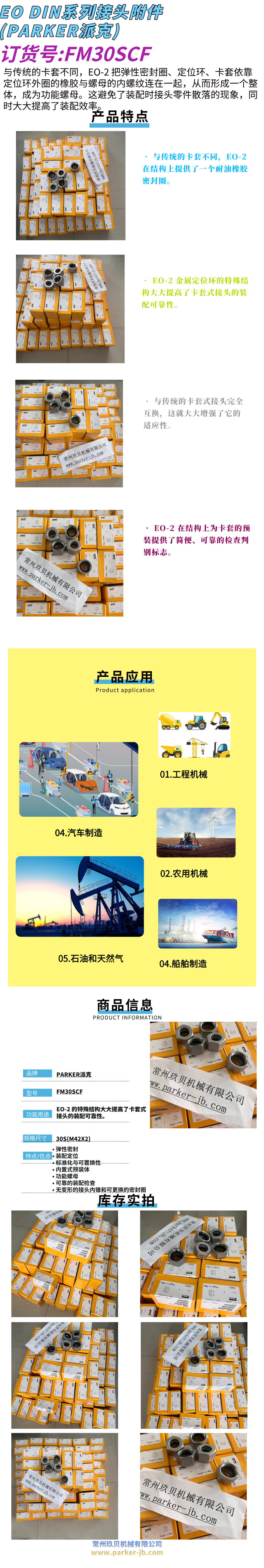 无泄漏PARKER派克EO2功能螺母FM30SCF密封更可靠更能承受恶劣工况