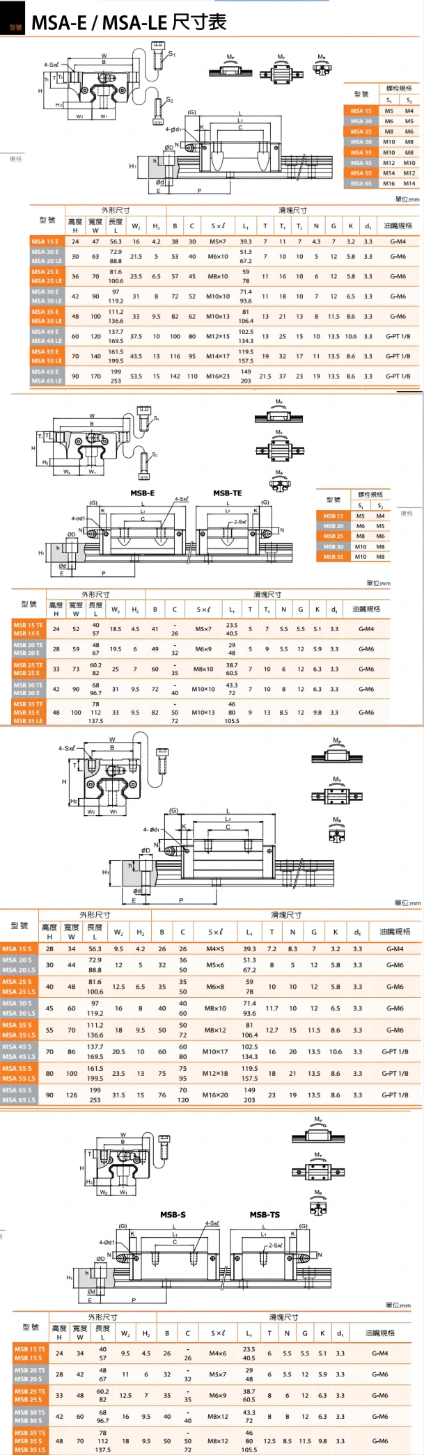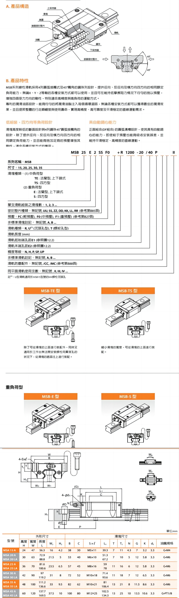 数控机床MSA30S滚珠导轨滑块负载能力强PMI银泰原料放心量身定制