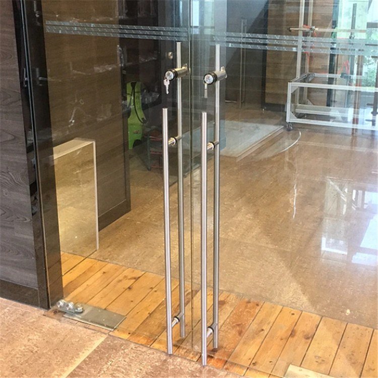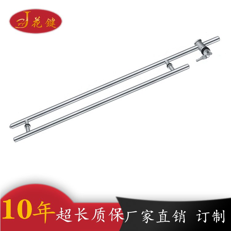 不锈钢带锁大把手 佛山花键五金玻璃门带锁拉手 地锁07D美标304不锈钢拉手锁