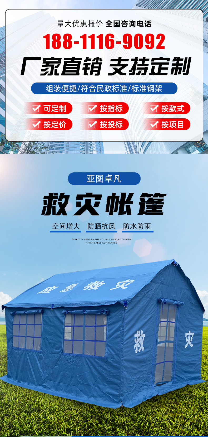 救灾帐篷生产厂家大型紧急住人支持定制单层加棉应急救援帐篷