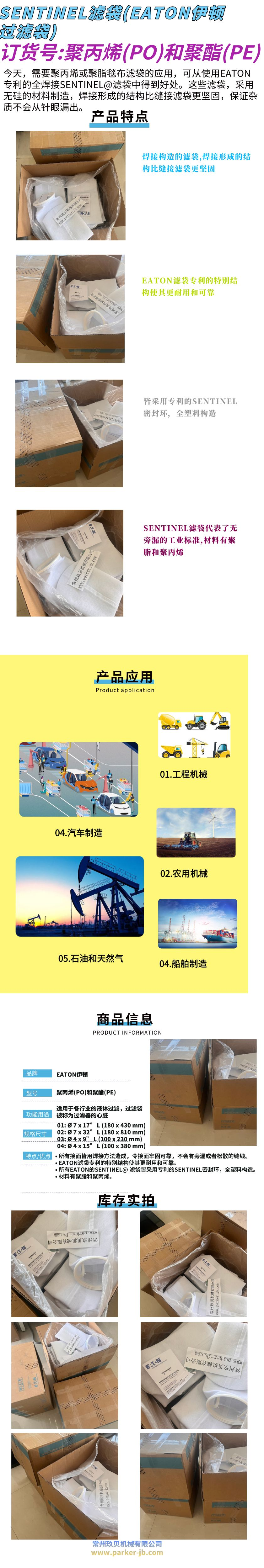 EATON伊顿SENTINEL过滤袋全焊接结构接面牢固可靠接口亦有弹性
